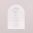 Avec son élégante découpe en forme d'arche, ce menu de mariage, assorti à vos faire-part, complétera merveilleusement votre décoration de table. Présentez-le sur un élégant porte-carte en bois (disponible en option), déposez-en un sur chaque assiette, sublimez-les d’un joli ruban…