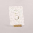 Assorti à votre faire-part, ce numéro de table agrémentera parfaitement votre décoration du jour J. Présentez-le sur un élégant porte-carte en bois (disponible en option), attachez-le à l’aide d’une ficelle autour d’un mason jar en verre garni de fleurs séchées… laissez parler votre imagination !