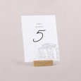 Assorti à votre faire-part, ce numéro de table agrémentera parfaitement votre décoration du jour J. Présentez-le sur un élégant porte-carte en bois (disponible en option), attachez-le à l’aide d’une ficelle autour d’un mason jar en verre garni de fleurs séchées… laissez parler votre imagination !