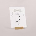 Assorti à votre faire-part, ce numéro de table agrémentera parfaitement votre décoration du jour J. Présentez-le sur un élégant porte-carte en bois (disponible en option), attachez-le à l’aide d’une ficelle autour d’un mason jar en verre garni de fleurs séchées… laissez parler votre imagination !