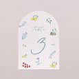 Assorti à votre faire-part, ce numéro de table agrémentera parfaitement votre décoration du jour J. Présentez-le sur un élégant porte-carte en bois (disponible en option), attachez-le à l’aide d’une ficelle autour d’un mason jar en verre garni de fleurs séchées… laissez parler votre imagination !