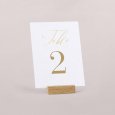 Assorti à votre faire-part, ce numéro de table agrémentera parfaitement votre décoration du jour J. Présentez-le sur un élégant porte-carte en bois (disponible en option), attachez-le à l’aide d’une ficelle autour d’un mason jar en verre garni de fleurs séchées… laissez parler votre imagination !