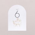 Assorti à votre faire-part, ce numéro de table agrémentera parfaitement votre décoration du jour J. Présentez-le sur un élégant porte-carte en bois (disponible en option), attachez-le à l’aide d’une ficelle autour d’un mason jar en verre garni de fleurs séchées… laissez parler votre imagination !