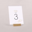 Assorti à votre faire-part, ce numéro de table agrémentera parfaitement votre décoration du jour J. Présentez-le sur un élégant porte-carte en bois (disponible en option), attachez-le à l’aide d’une ficelle autour d’un mason jar en verre garni de fleurs séchées… laissez parler votre imagination !