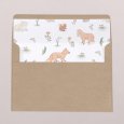 Tendrement illustrés, les petits animaux forestiers du faire-part Chère Campagne II apportent la belle nouvelle du baptême de votre enfant. Dans ce décor végétal et fleuri, le prénom de votre enfant et sa date de baptême restent au centre de toutes les attentions.