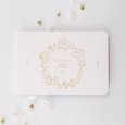 Sur le faire-part de baptême Petit écureuil doré, ces adorables animaux forment une magnifique couronne d'or autour de l’invitation de votre enfant. Un modèle attendrissant qui présage une cérémonie douce et conviviale.