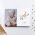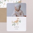 Perché sur sa branche, un petit colibri semble contempler la photographie de votre enfant, dont le baptême sera bientôt célébré ! Conviez vos proches à l'évènement avec ce modèle plein de douceur et de poésie.