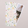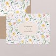 Frais et printanier, le faire-part de baptême Lilly Rose s'habille de jonquilles, violettes, pissenlits et autres fleurs colorées. Agrémenté de petites abeilles, ce faire-part est idéal pour une célébration de baptême au printemps ou en été.