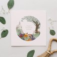 Dans un décor champêtre qui laisse entrevoir une église, d'adorables animaux des bois se rencontrent pour partager la nouvelle : le baptême de votre enfant sera bientôt célébré. Avec ses illustrations bucoliques, ce modèle sera parfait pour une cérémonie prévue sur les mois printaniers.