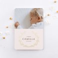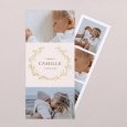 Sur le faire-part de baptême Octavia, des branches d'olivier dorées mettent en lumière votre invitation, tendrement personnalisée avec la photo de votre enfant. Un modèle simple et élégant qui conviendra aux cérémonies religieuses comme civiles.