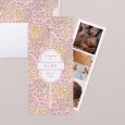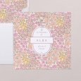 Des fleurs pastel de couleur rose, orange, jaune se mêlent sur le faire-part de baptême Allegria. Un tableau d'une joyeuse poésie colorée, parfait pour annoncer le baptême de votre fille ou garçon au printemps.