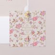 Deux perforations sont prévues sur le recto de la carte pour faire passer un ruban et un brin de fleurs séchées (tous deux sont à choisir en supplément). Pour maintenir l'ensemble, glissez les fleurs et le ruban à travers l'étiquette et nouez le ruban.