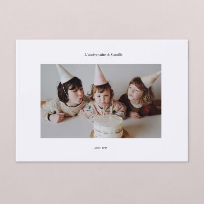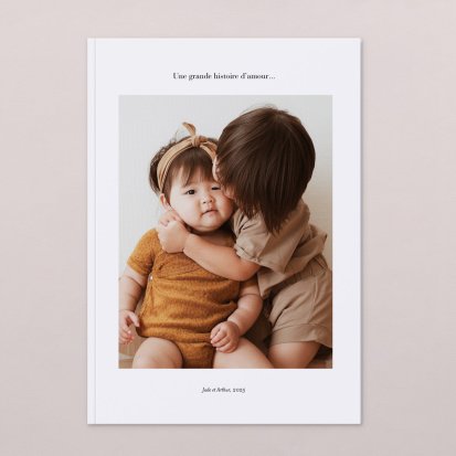 Notre gamme d'albums photos de mariage est spécialement conçue pour suivre les codes de cette cérémonie. La couverture du livre photo laisse apparaître un design simple sur fond blanc ou kraft. Une ligne fine rappelle l'élégance de la robe de la mariée et le lien qui vous unit désormais. Une création unique est ce qu'il faut à votre album photo souvenir.